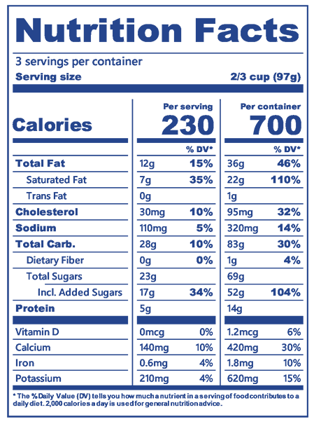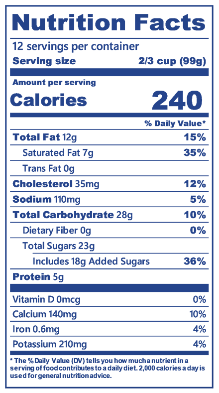 Milk, cream, sugar, skim milk, high fructose corn syrup, wheat flour, palm oil, contains 2% or less of: corn syrup, cocoa (processed with alkali), natural and artificial flavor, soy lecithin, salt, baking soda, cellulose gum, guar gum, carrageenan, carob bean gum.